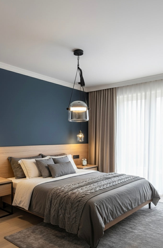 Transform your living space with this sophisticated pendant light fixture that seamlessly blends modern design with practical illumination. The striking clear glass dome shade is suspended by elegant black metal chains, creating a perfect balance of contemporary style and industrial charm. This versatile lighting solution casts a warm, inviting glow that's ideal for dining areas, living rooms, or bedrooms. The transparent dome allows maximum light diffusion while making a bold design statement. The adjustable chain mechanism lets you customise the hanging height to suit your space perfectly. The black metal hardware provides a sleek contrast against the crystal-clear shade, making it a stunning focal point in any room. Whether positioned above a dining table, in a living area, or as bedroom accent lighting, this pendant light adds both functionality and refined aesthetics to your interior design. The fixture's clean lines and minimalist approach make it an excellent choice for modern, contemporary, or industrial-style décor schemes.